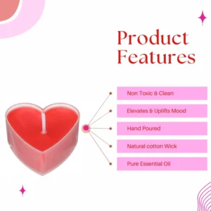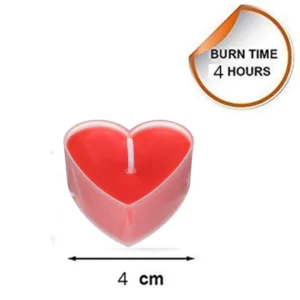 This Anveera Tea-light candle is heart shaped, Red Coloured, making it the perfect gift for someone special. This Candle is made by using Paraffin Wax. The candle is made of acrylic, making it durable and long-lasting. The candle is a tea light, making it perfect for use in any room. This candle is ideal for gifts, decorations, and more. Heart Shaped Red Coloured, Scented, Tealight Candles That Will Win Your Heart! Anveera‘s heart-shaped tealight candles in English Rose fragrance will uplift the environment. It will put your partner in a romantic mood. You can make your partner feel special by decorating your living spaces or gifting them this little bundle of joy. Special Gift for Valentine’s day, and Anniversary and to create a proper environment for Proposing your love. These candles are available in a pack of 10 pcs. You can buy this product as per your requirement.