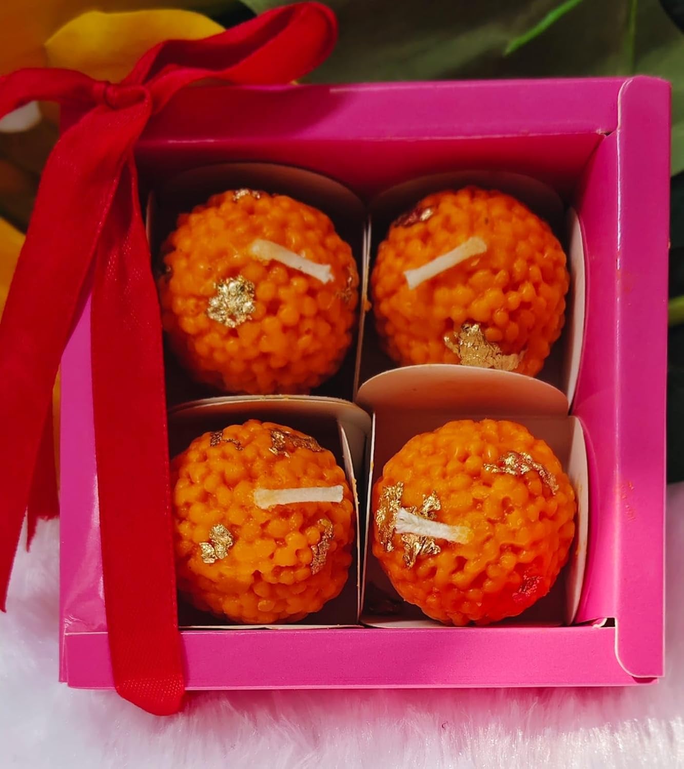 38 reviews for Traditional Motichur Ladoo Candles for Festive Gifting, Home Decor, Diwali Gift Set (Ladoo Candles, 4, Count) | Soy Wax 100%